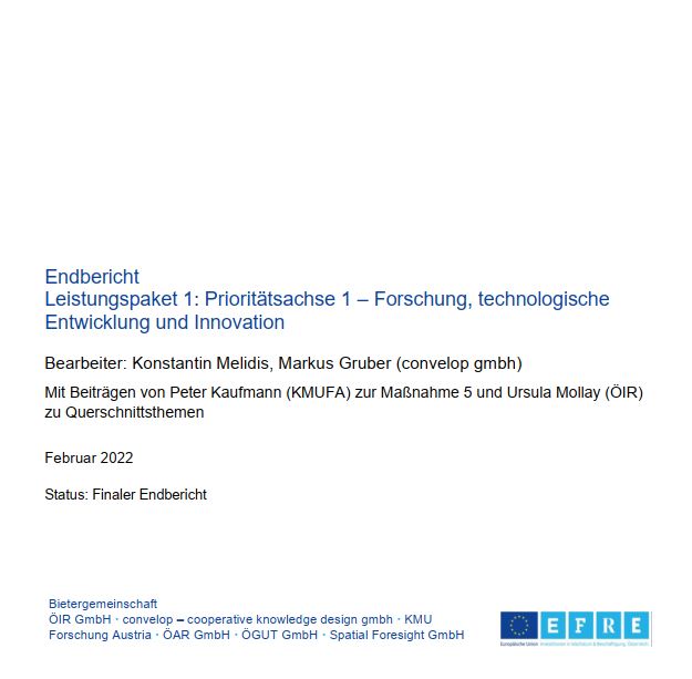 Der finale Evaluierungsbericht analysiert Maßnahmen der Prioritätsachse 1 "Wettbewerbsfähigkeit durch Forschung, technologische Entwicklung und Innovation" sowie die Zielerreichung der gesetzten Fördermaßnahmen in diesem Bereich.