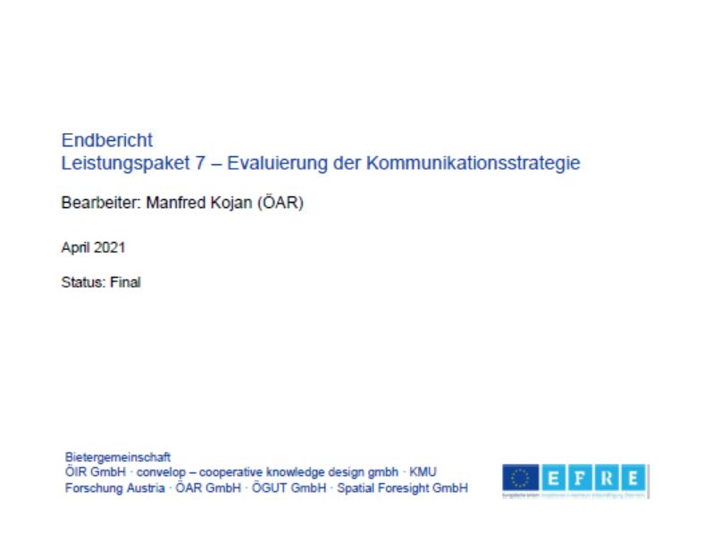 Der finale Evaluierungsbericht für die Prioritätsachse 2 "Stärkung der regionalen Wettbewerbsfähigkeit von kleineren und mittleren Unternehmen" analysiert die Zielerreichung der gesetzten Fördermaßnahmen. Der Bericht wurde unter der Leitung von Peter Kaufmann (KMU-Forschung) unter Einbeziehung relevanter Stakeholder erstellt.