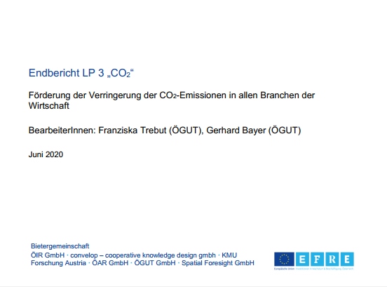Der finale Evaluierungsbericht für die Prioritätsachse 3 "CO2-Reduktion in der Wirtschaft" analysiert die Zielerreichung der gesetzten Fördermaßnahmen. Der Bericht wurde von Franziska TREBUT und Gerhard BAYER (ÖGUT) unter Einbeziehung relevanter Stakeholder erstellt.