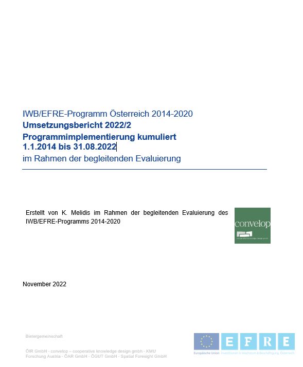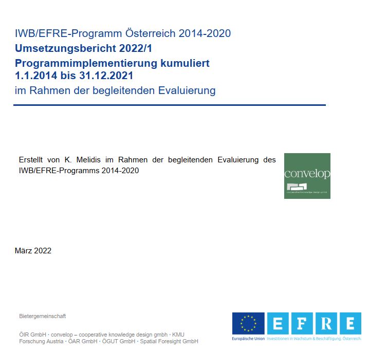 IWB/EFRE-Programm Österreich 2014-2020: 9. Umsetzungsbericht 2022/1 im Rahmen der begleitenden Evaluierung