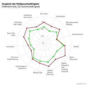 Alle Bundesländer haben bei dem Kriterium „Basic Education“ vergleichbaren Regionen gegenüber die Nase vorne, Österreich punktet auch durch seine makroökonomische Stabilität. Nachholbedarf besteht teilweise und regional sehr unterschiedlich bei Infrastruktur, Innovation und technologischen Kriterien wie zB Nutzung von Internet oder der Verfügbarkeit neuester Technologien.