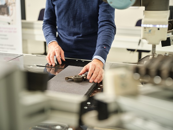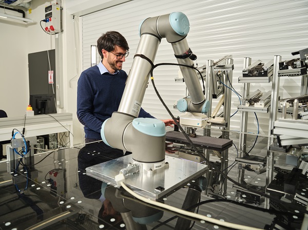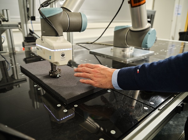 Herzstück der Versuchsanlage sind kapazitive Sensoren die in einer engen Kooperation zwischen der Alpen-Adria Universität Klagenfurt und JOANNEUM RESEARCH ROBOTICS entwickelt wurden. Diese erlauben eine feine Abstimmung und Interaktion von Mensch und Maschine: „Der kapazitive Sensor misst die Veränderung des elektrischen Feldes und kann Objekte und Personen bis zu einer Reichweite von 20 cm detektieren. Diese Sensoren können sowohl im Arbeitstisch als auch am Roboter vollständig integriert werden. So werden blinde Flecken vermieden, auch wenn Mensch und Roboter sich nahekommen und für eine Kamera der risikobehaftete Kollaborationsbereich durch den Roboterarm verdeckt wäre“, erklärt der Senior Researcher vom Institut für Robotik und Mechatronik bei JOANNEUM RESEARCH. Genauso wichtig ist in diesem Zusammenspiel die blitzschnelle und zuverlässige Sensordatenverarbeitung: Die eingehenden Daten aus den Sensoren müssen binnen Millisekunden verarbeitet und die passende Steuerung – also Bremsen, Beschleunigen, Ausweichen, Anreichen oder Stoppen – ausgelöst werden.