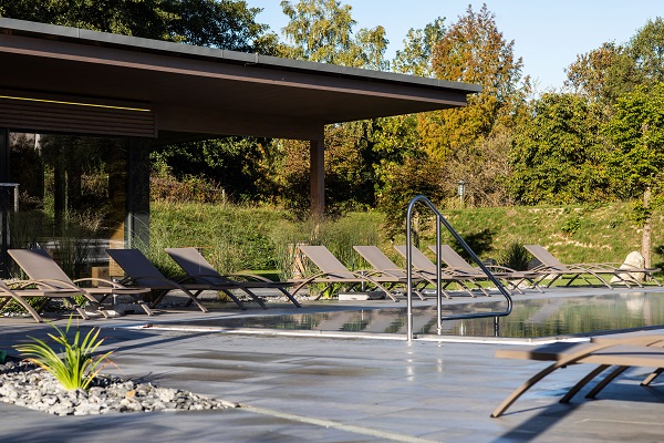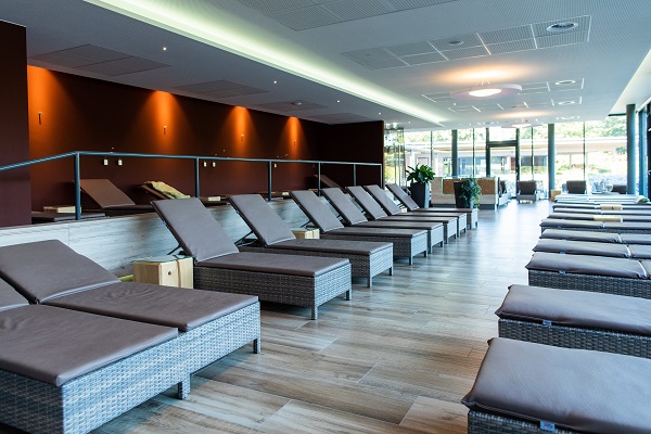 Ähnlich angespannt war die Situation im Restaurant und bei Anfragen für Tagesseminare, Geburtstagfeiern, Hochzeiten oder Frühstücksreservierungen. Also flossen mit Unterstützung durch das Förderprogramm IWB/EFRE rund 2,5 Mio. Euro in den Wellness- und Saunabereich sowie in das Restaurant. Den Hotelgästen wurde ein langjähriger Wunsch erfüllt: Sie bekamen einen exklusiven Ruhebereich – die Garten-Lounge – mit rund 50 zusätzlichen Liegeplätzen. Hier haben Tagesgäste keinen Zutritt. Ein bestehender öffentlicher Ruheraum wurde durch den Einbau von Infrarotliegen und -kabinen aufgepeppt.